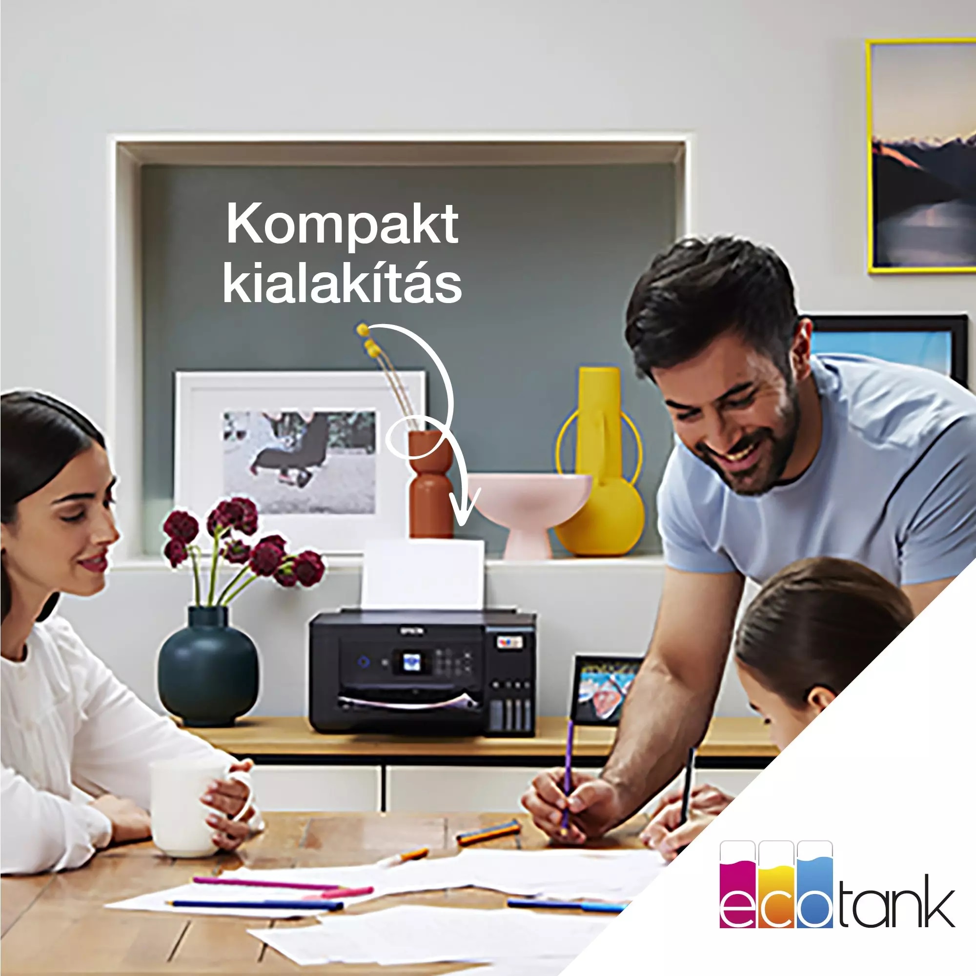 Ez a kétoldalas nyomtatást is biztosító, tintapatron nélküli, többfunkciós EcoTank nyomtató ultra alacsony költségű vezeték nélküli nyomtatást biztosít