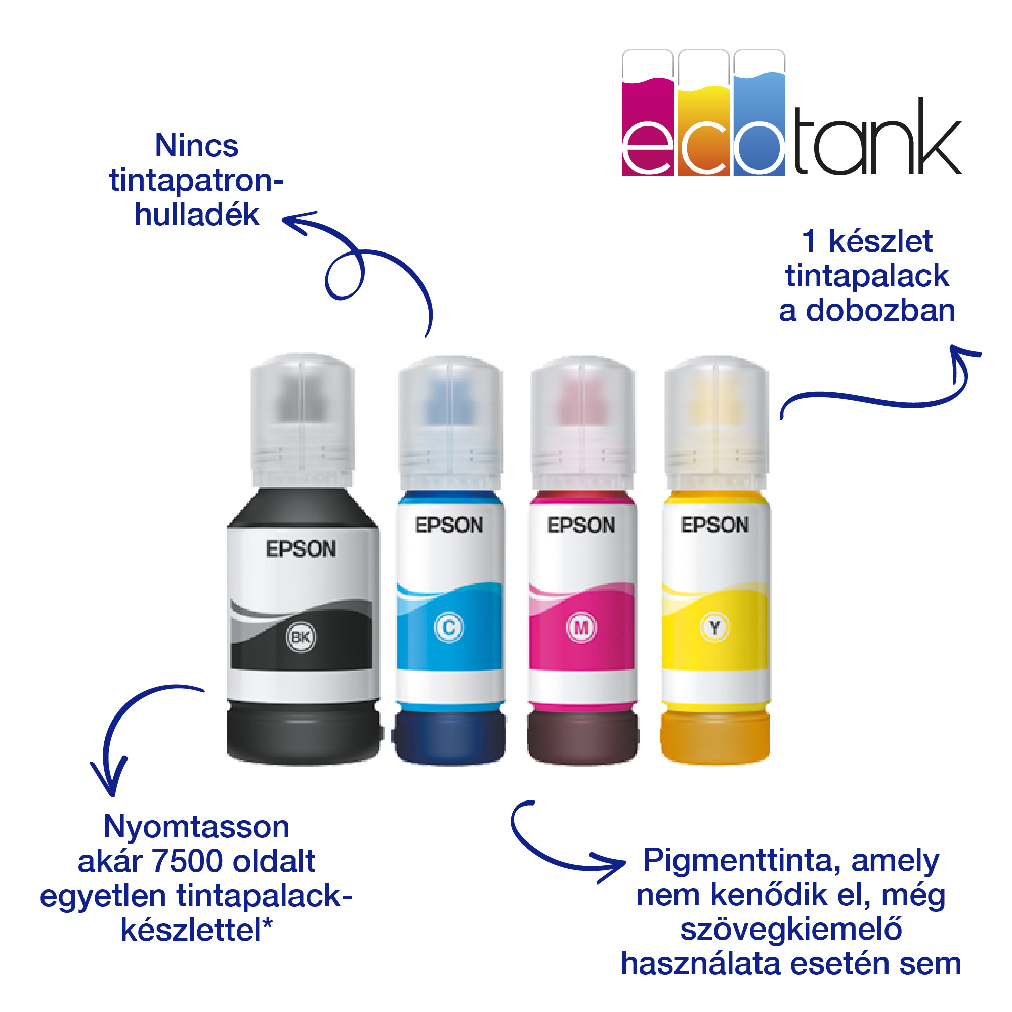 szett tinta (1 x 127 ml BK, 3 x 70 ml CMY), Nyomtató, Tápkábel, Rövid