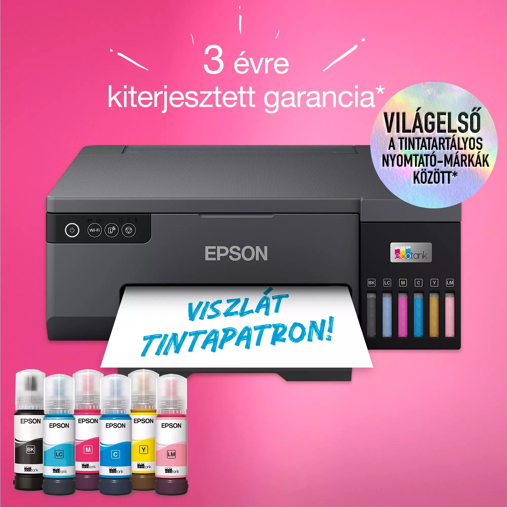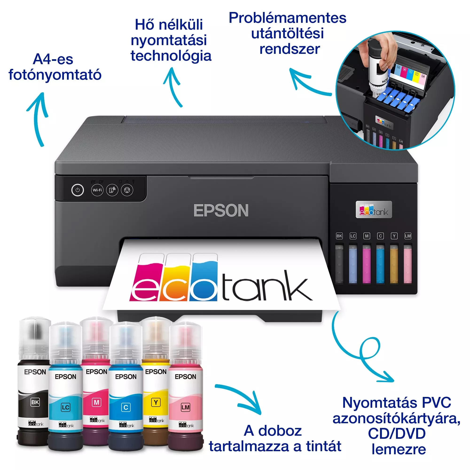 A rendkívül alacsony fotónkénti költséget és mobil nyomtatást kínáló gyors, patronmentes tintasugaras nyomtató tökéletes a nagy mennyiségű A4-es fotónyomtatáshoz. A kompakt kialakítás, a biztonsági záras palackok és a könnyebb tintatöltést lehetővé tevő, elülső tintatartályok révén az L8050 helytakarékos és könnyen használható megoldást kínál a fotósoknak. Széleskörű nyomathordozó-kompatibilitás: nyomtatás PVC-azonosítókártyára, valamint CD/DVD lemezekre is.