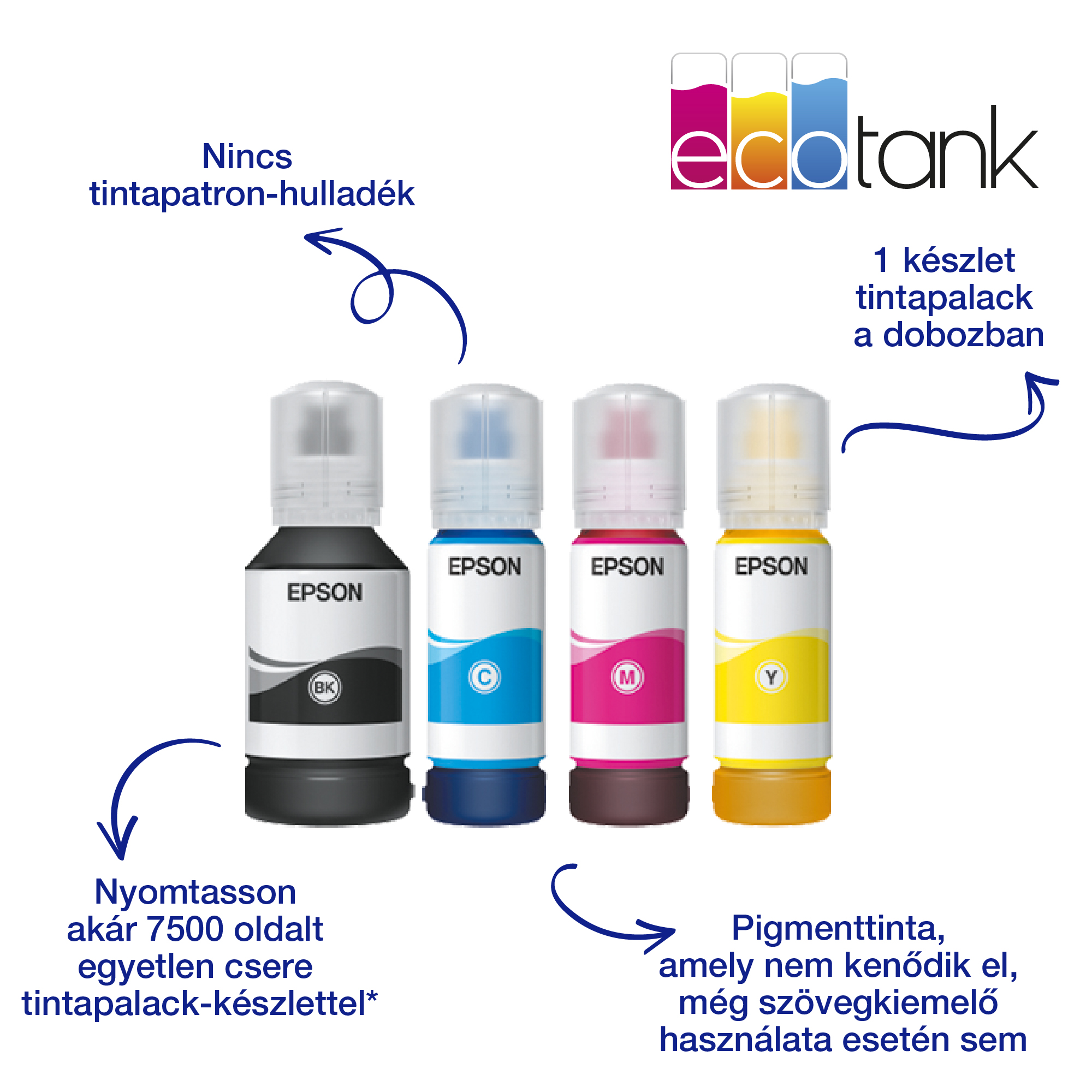 Élvezze az egyszerű és problémamentes utántöltést a továbbfejlesztett tintapalackokkal
